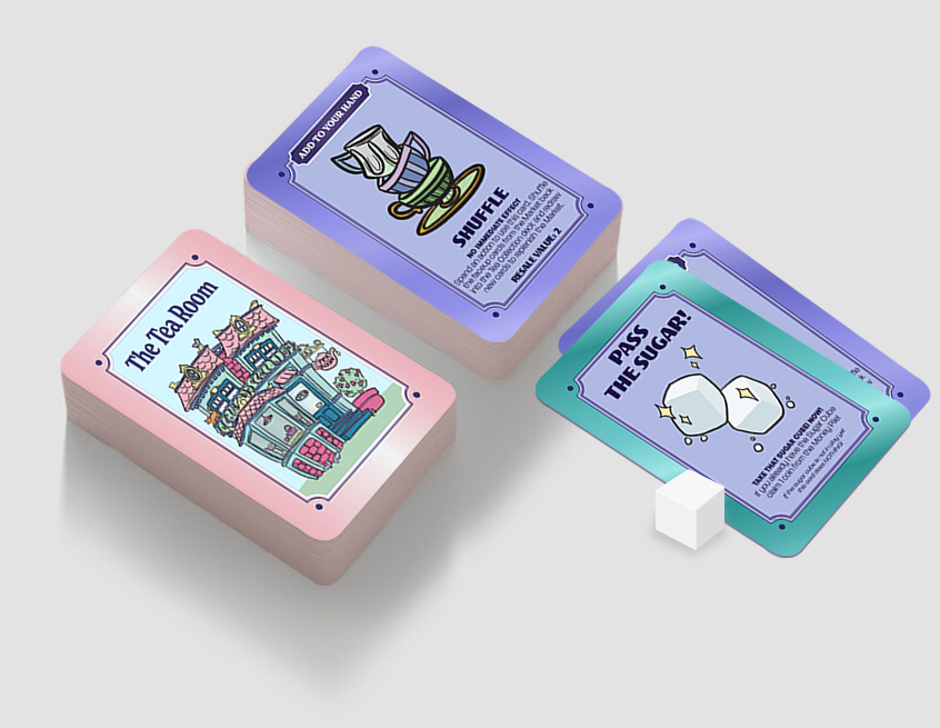 In PASS THE SUGAR the first player to purchase a full tea set wins the game! But with a catch - you can't win without the Sugar Cube!